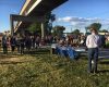 About seventy-five people took part in a vigil to honor the memory of George Floyd at the Meridian Bridge in Yankton Wednesday night.