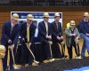The official start of construction of the Mount Marty College Fieldhouse was noted with a groundbreaking moved indoors due to rainy weather.